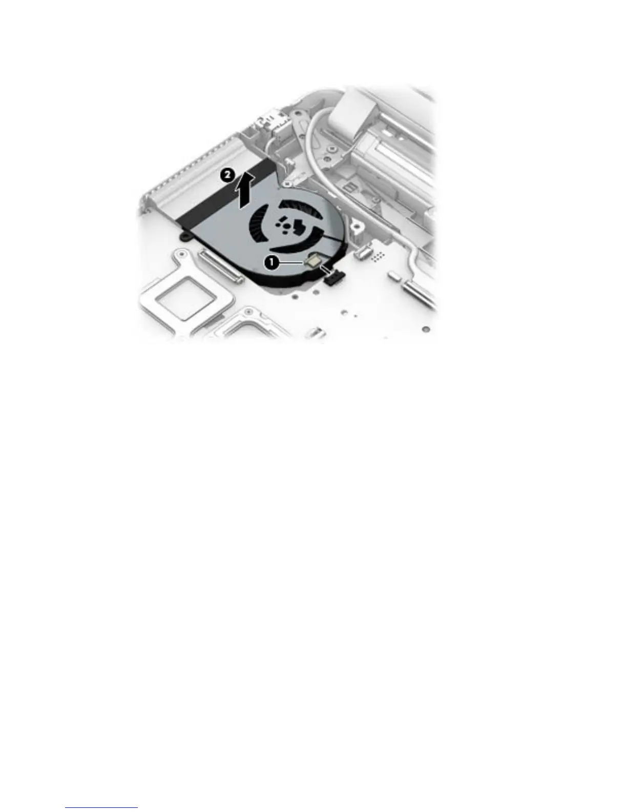 2. Lift the fan from the computer (2).