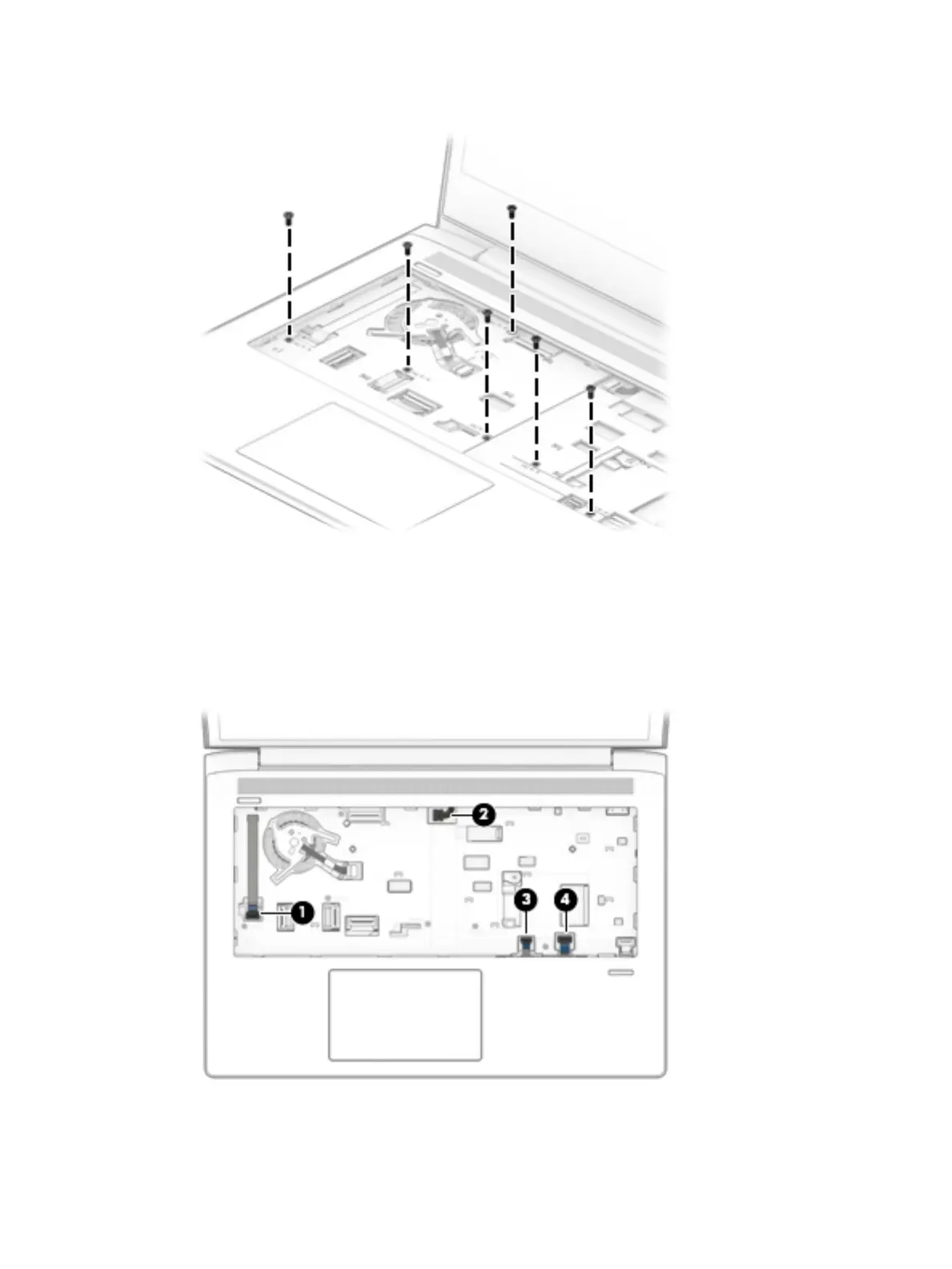 5. Remove the 6 Torx T8 2.5×5.0 screws from under the keyboard.