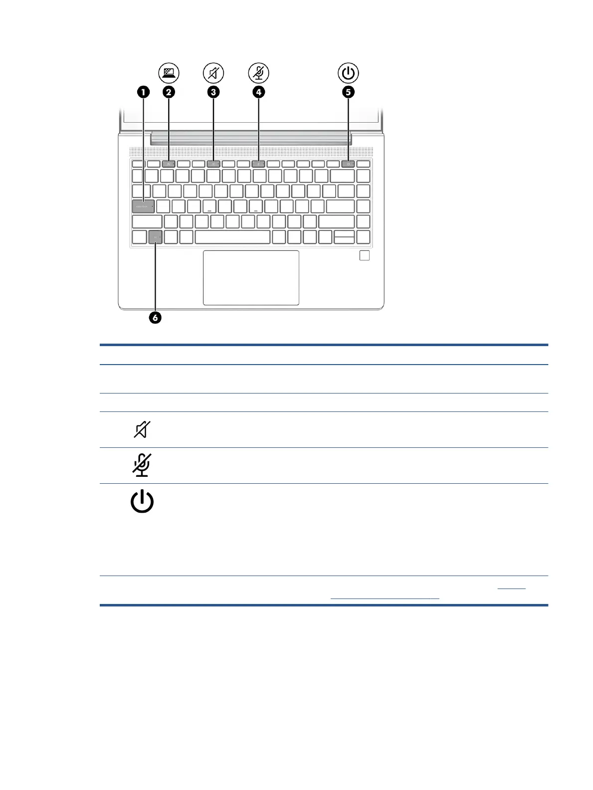 (6) Fn lock light On: The fn key is locked. For more information, see Hot keys
