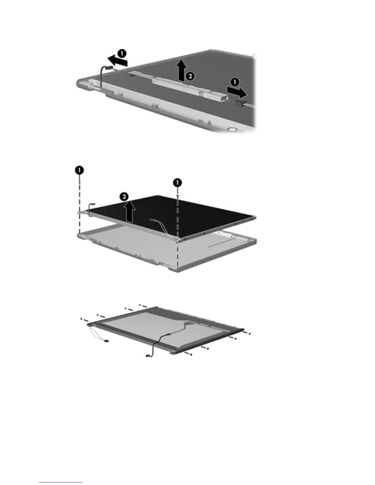 5. Remove all screws (1) that secure the display panel assembly to the display enclosure.