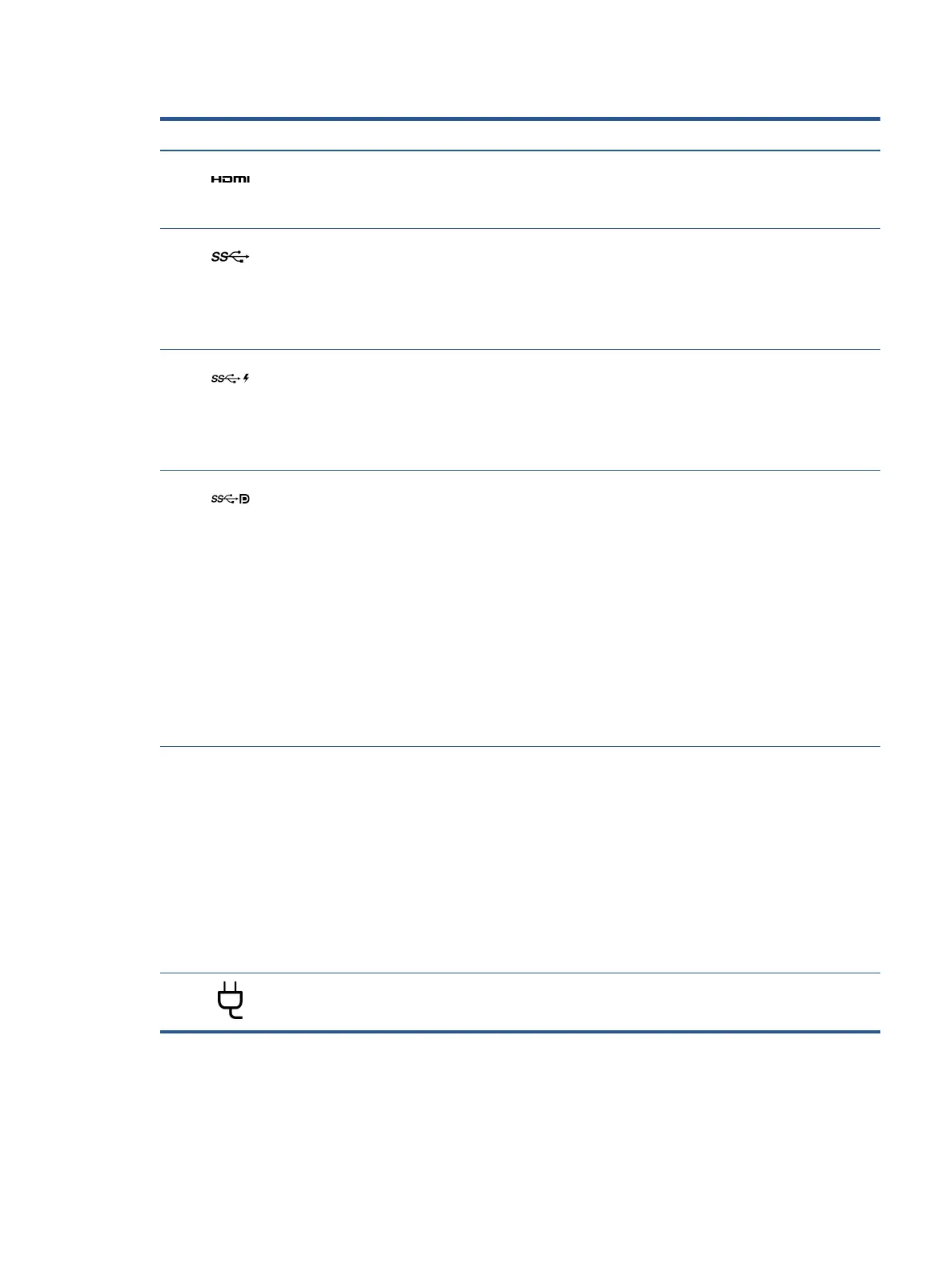 (4) USB SuperSpeed port Connects a USB device, provides high-speed data transfer, and