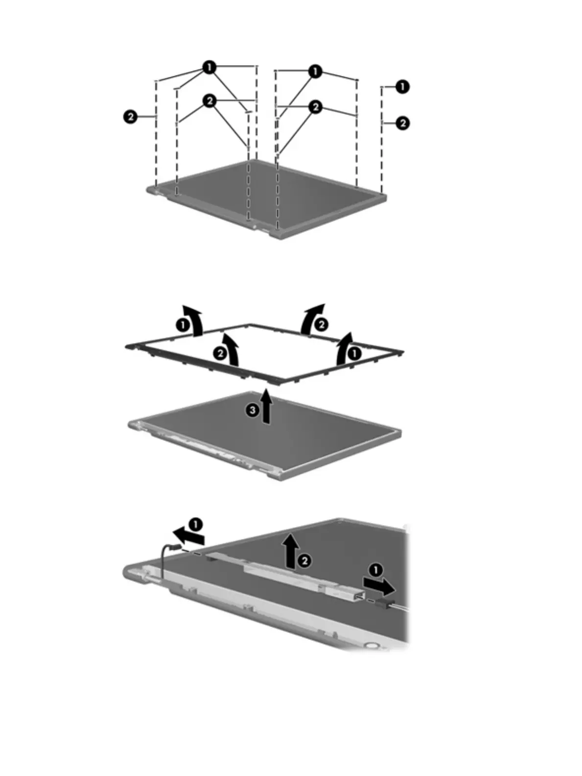 5. Remove all screws (1) that secure the display panel assembly to the display enclosure.