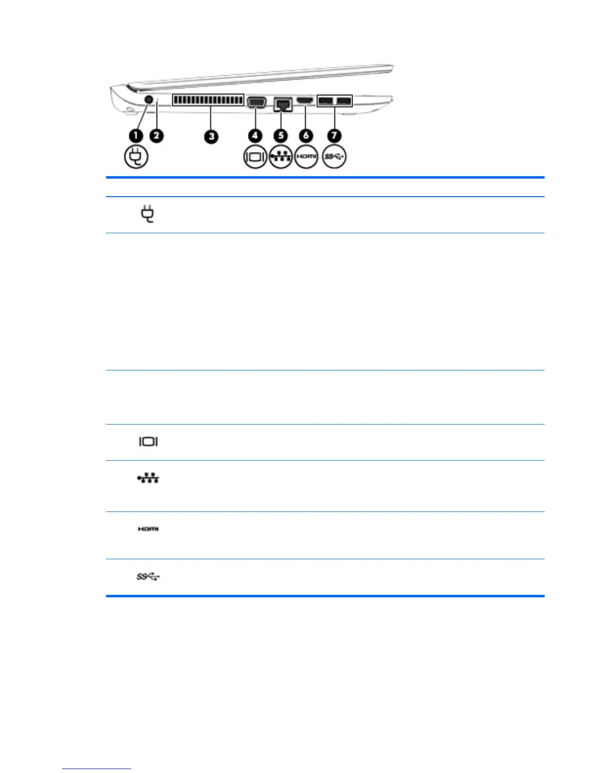 (7) USB 3.0 ports (2) Connect an optional USB device, such as a keyboard, mouse,
