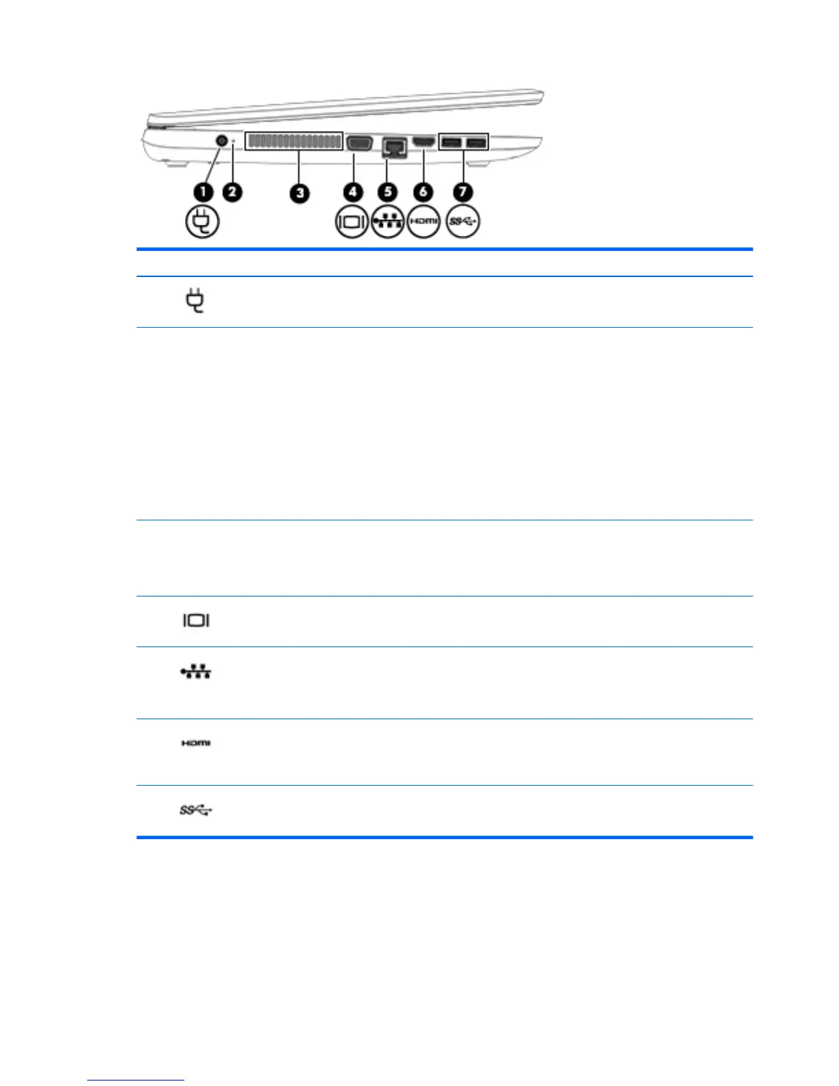 (7) USB 3.0 ports (2) Connect an optional USB device, such as a keyboard, mouse,