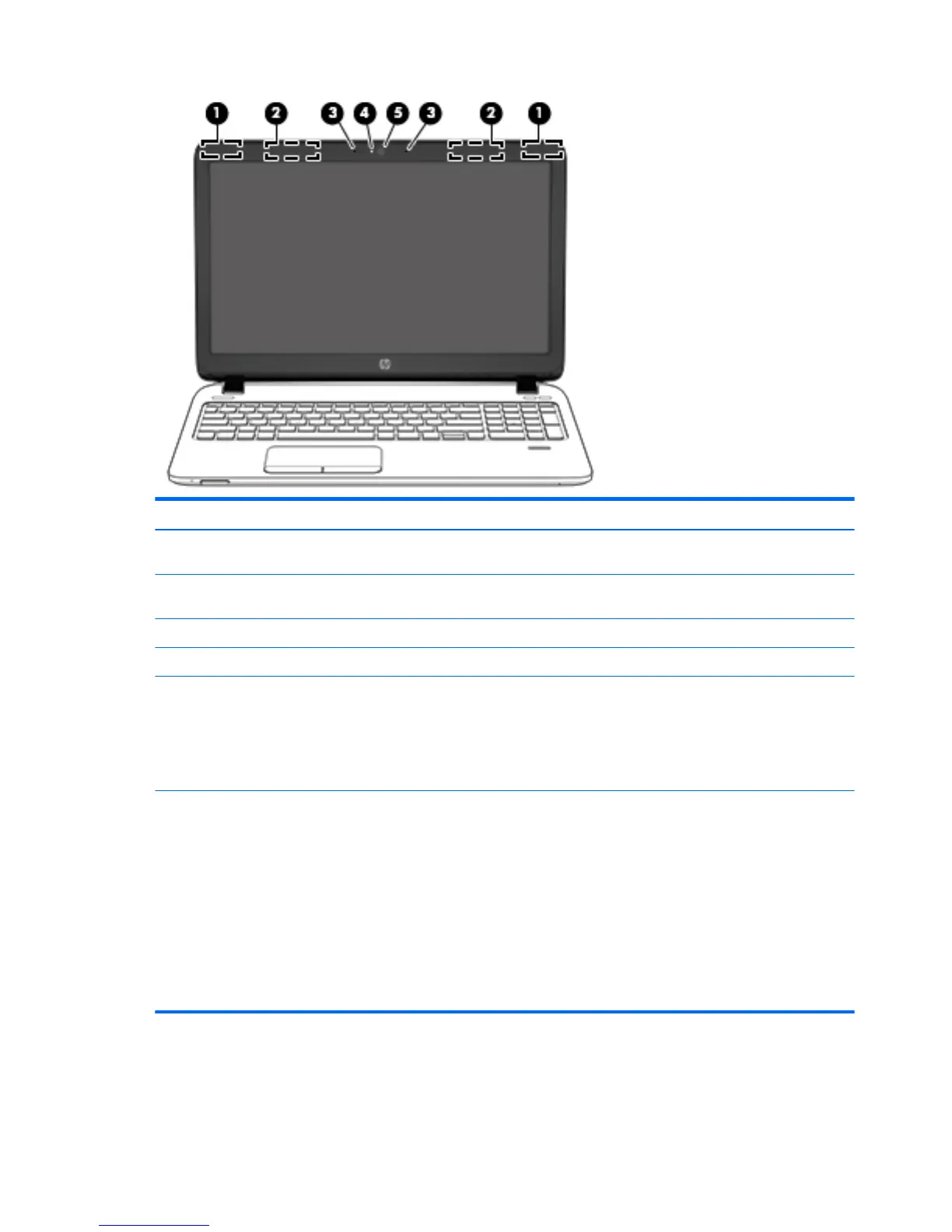 (1) WLAN antennas (2)* (select products only) Send and receive wireless signals to communicate with wireless local