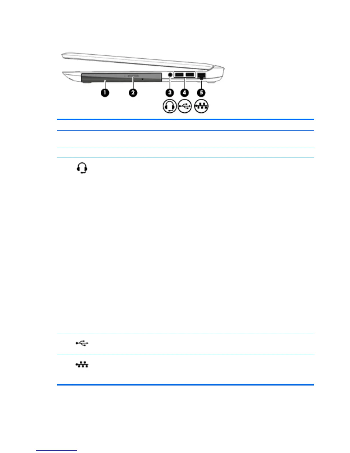 (2) Optical drive eject button (select products only) Releases the optical drive disc tray.