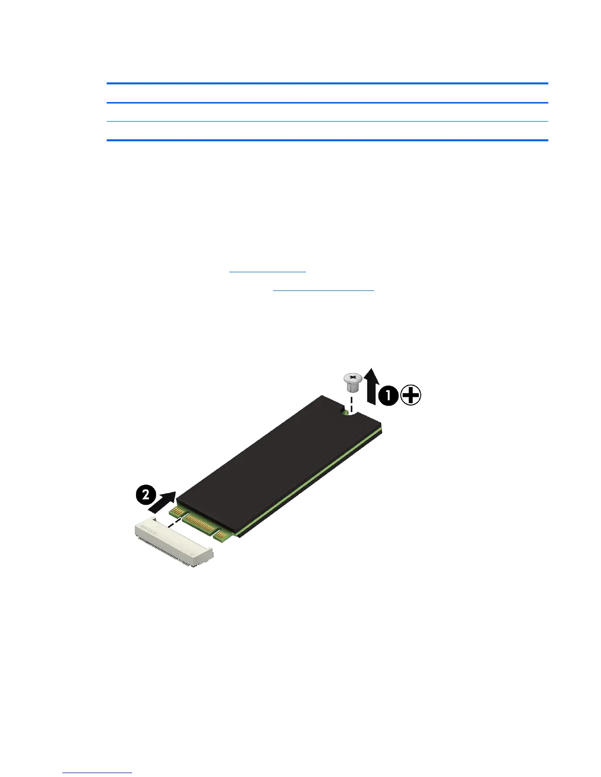 2. Remove the solid-state drive (2) by pulling the module away from the slot at an angle.