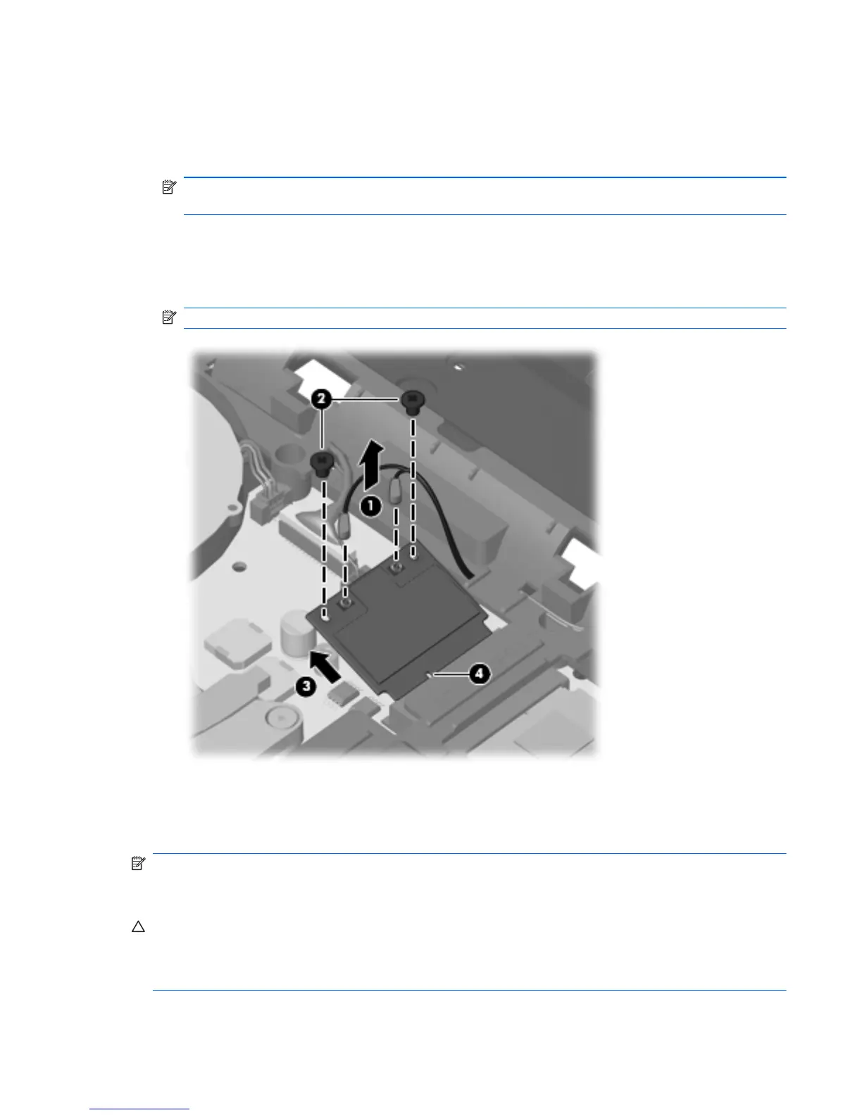 NOTE: WLAN modules are designed with a notch (4) to prevent incorrect insertion.