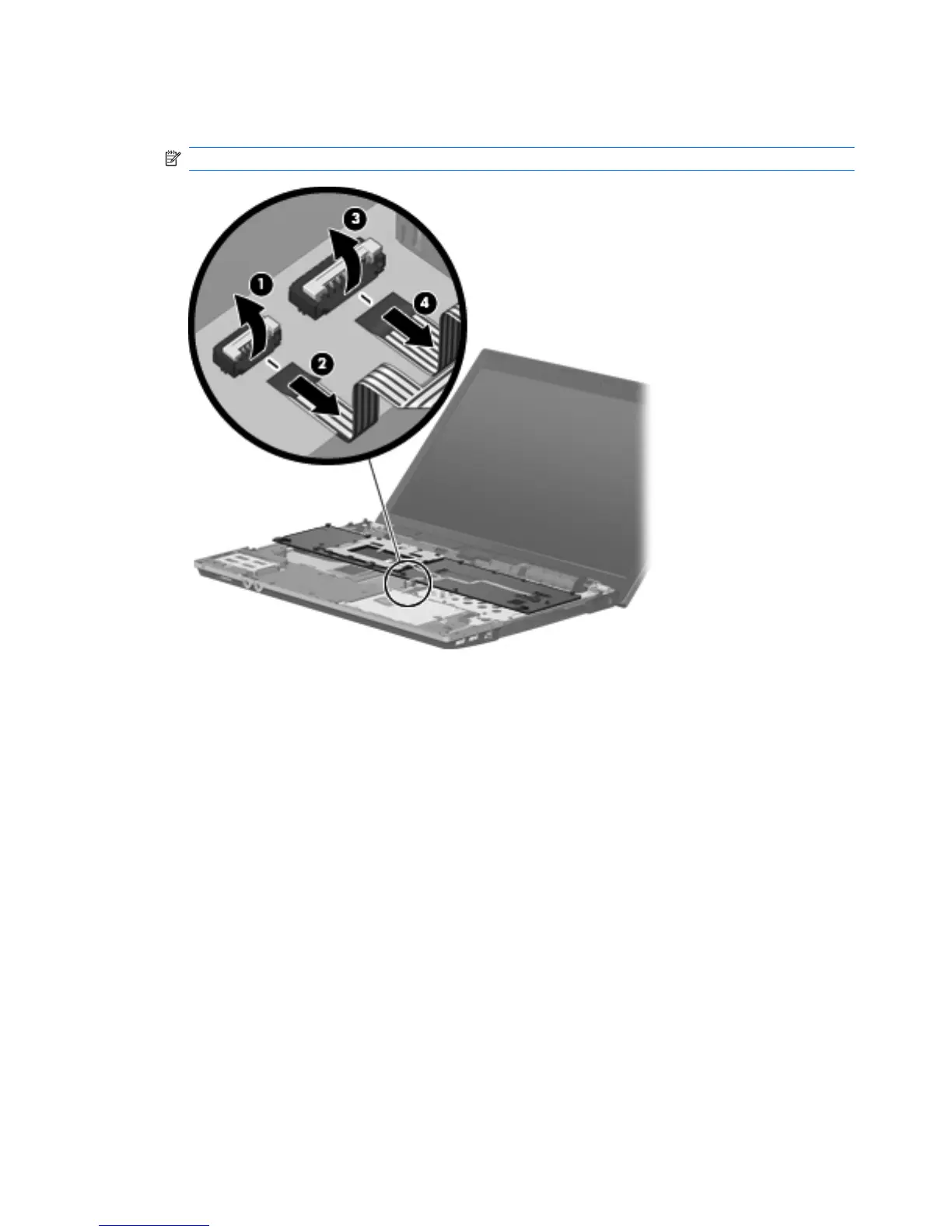 4. Release the ZIF connectors (1) and (3) to which the TouchPad and fingerprint cables are