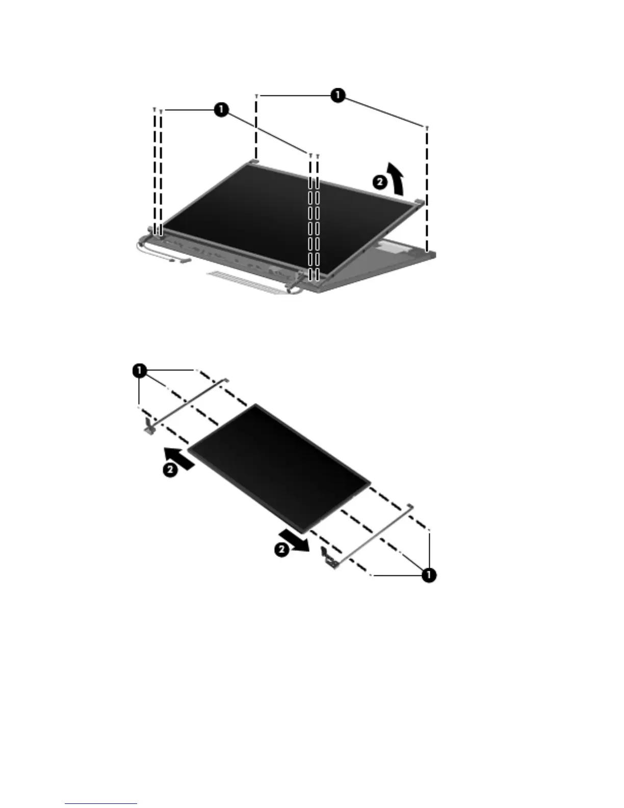and then remove the display hinges (2). The left and right display hinges are available in the