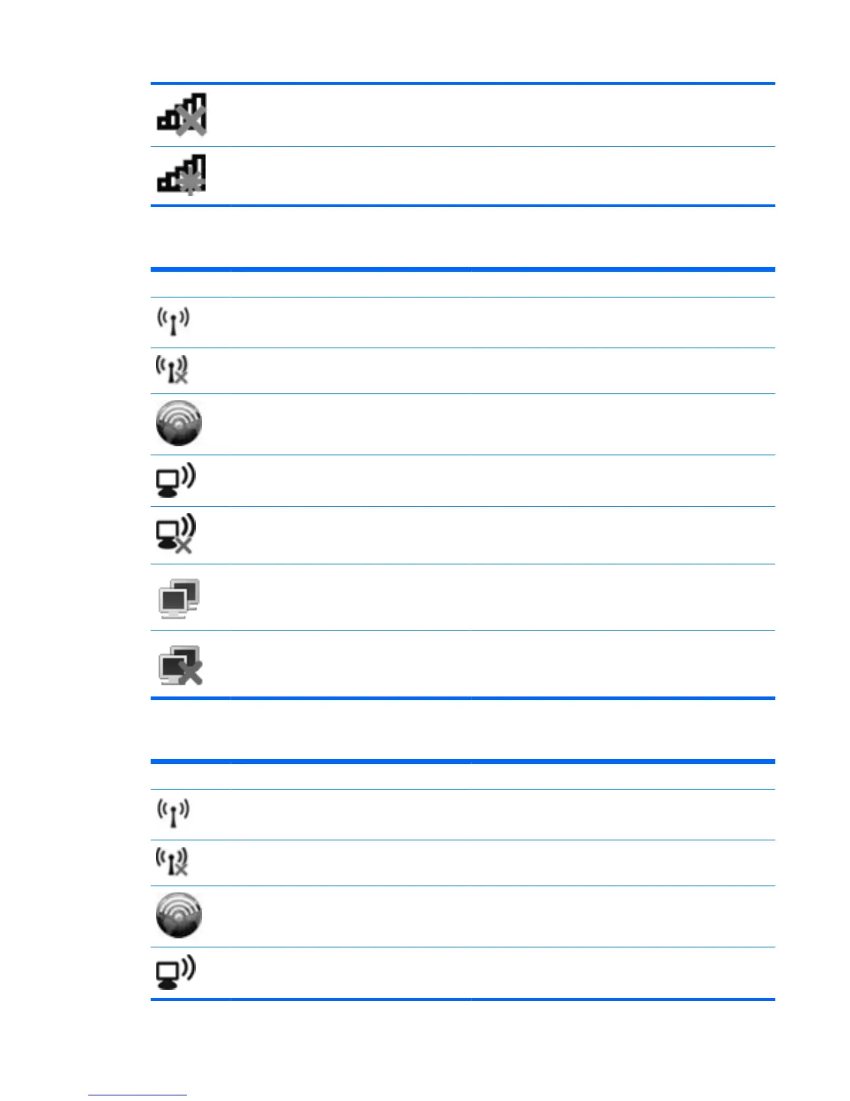 Wireless network connection (connected) Indicates that one or more WLAN devices are connected to
