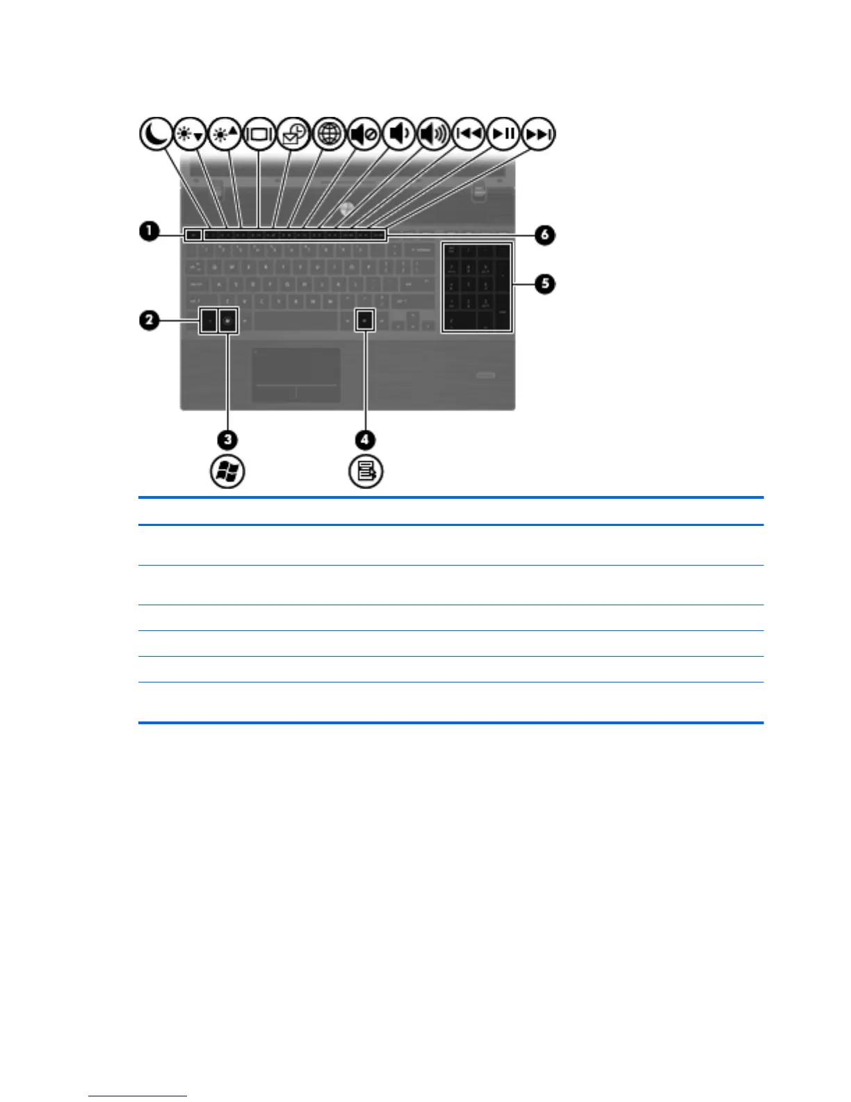 (4) Windows applications key Displays a shortcut menu for items beneath the pointer.