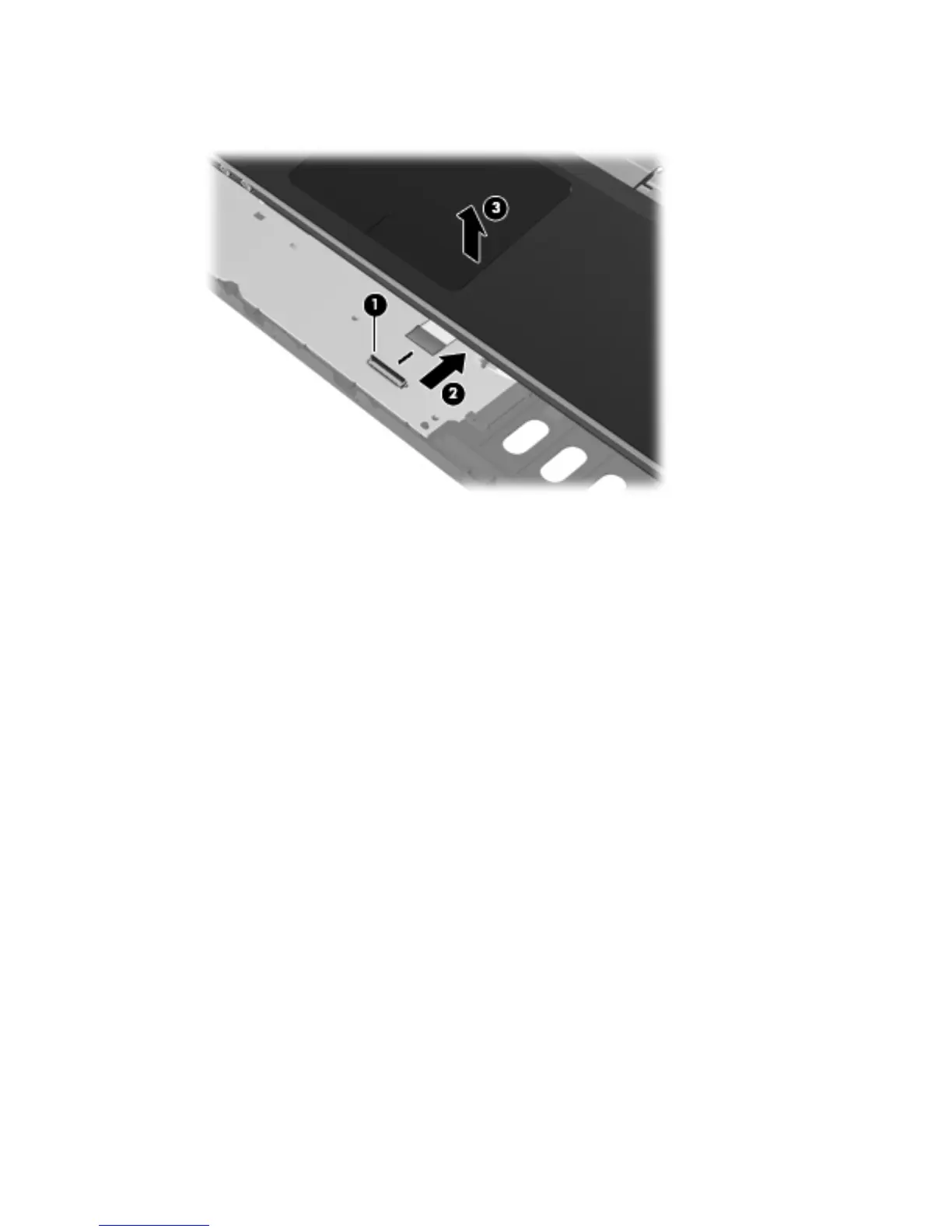 12. Lift the connector latch (1), disconnect the card reader cable (2), and then lift the top cover from