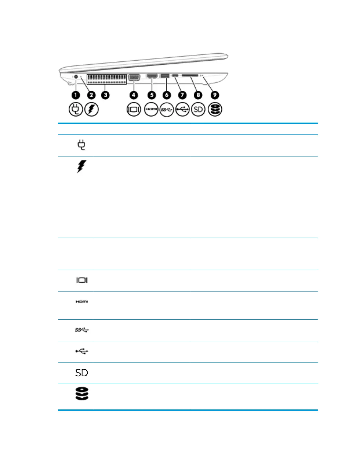 (6) USB 3.0 port Connects an optional USB device, such as a keyboard, mouse,