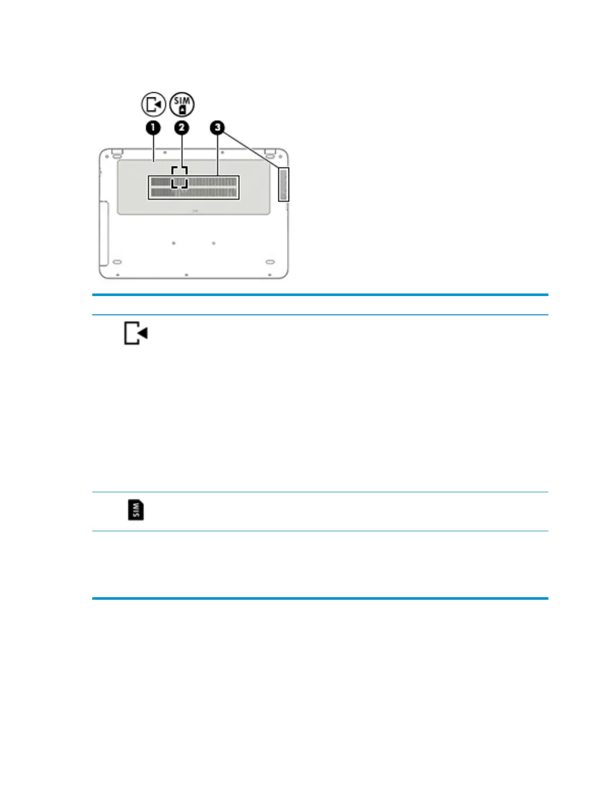 (1) Service door Provides access to the hard drive bay, the WLAN module