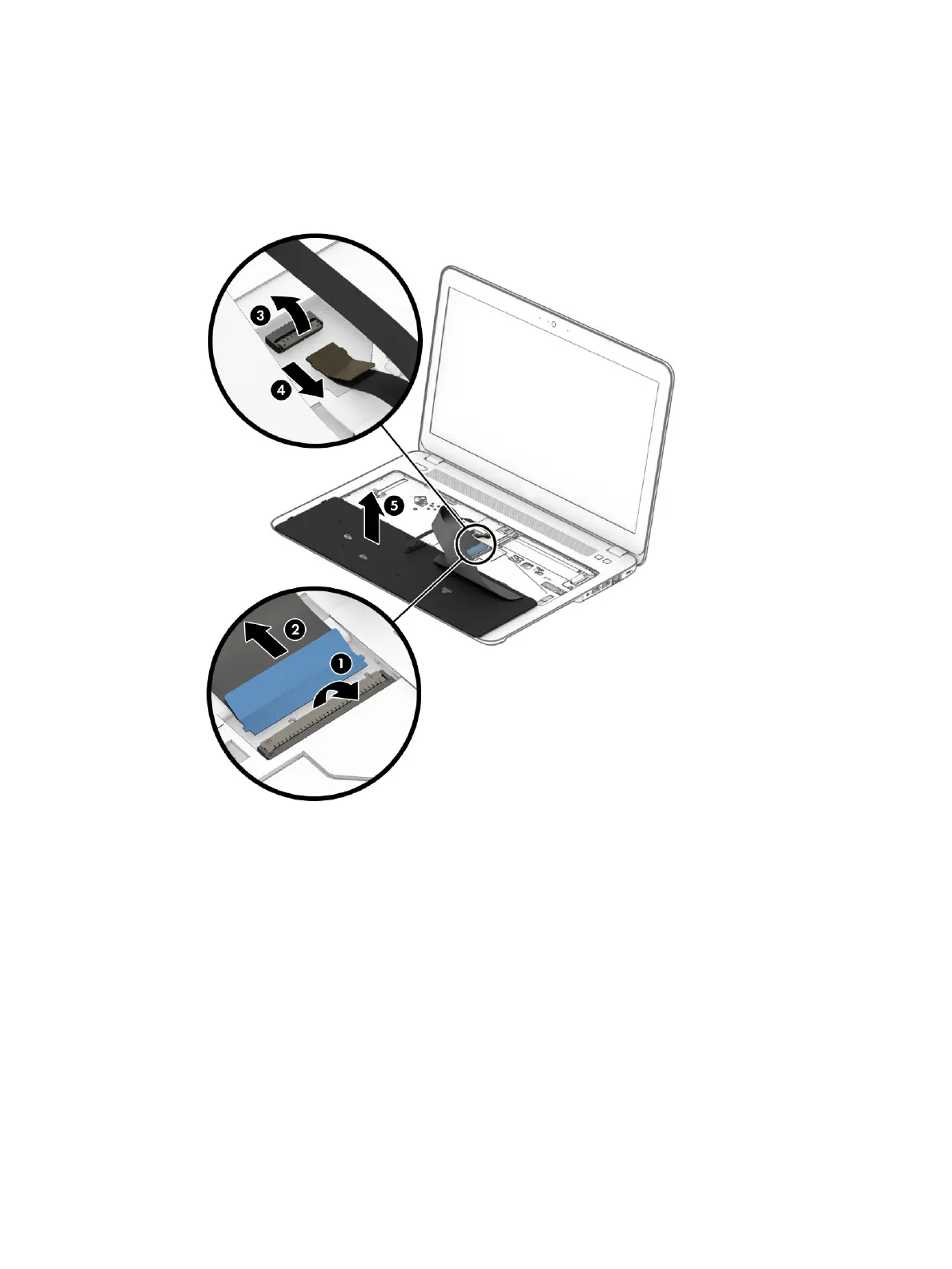 5. If applicable, disconnect the backlight cable by lifting the connector latch (3), and then disconnect the