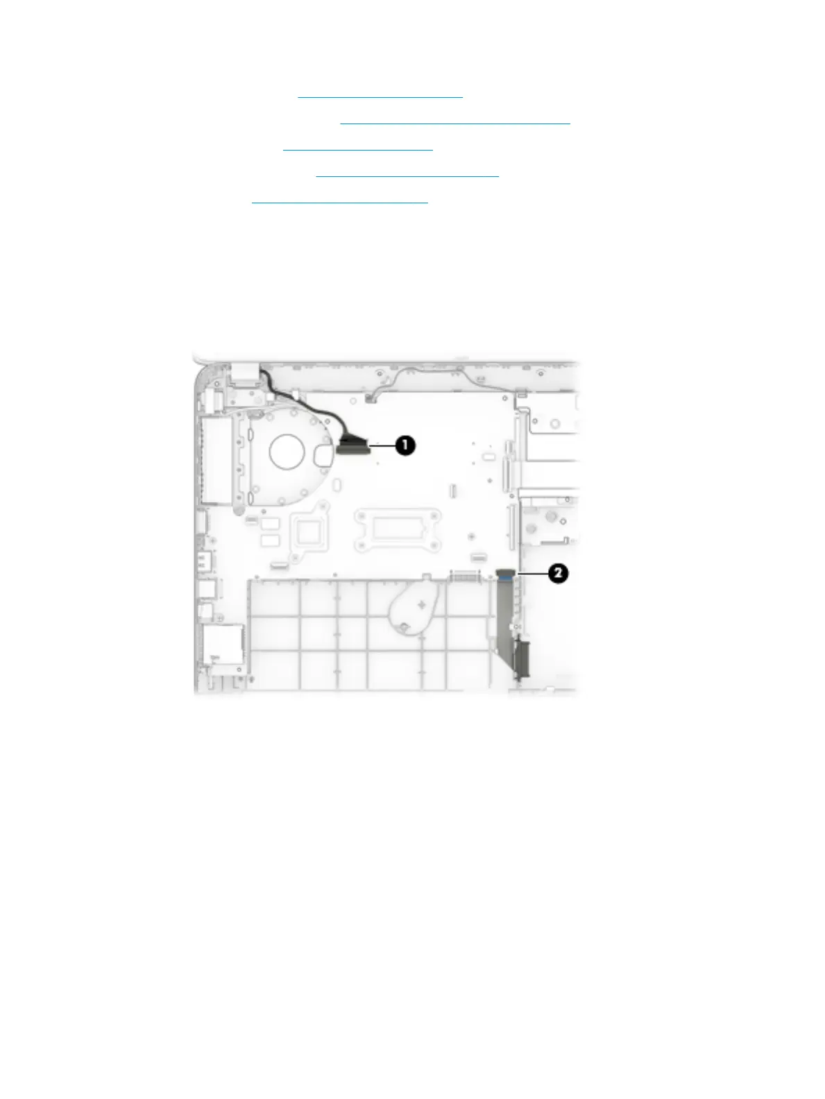6. Disconnect the power connector cable from the bottom of the system board (4).