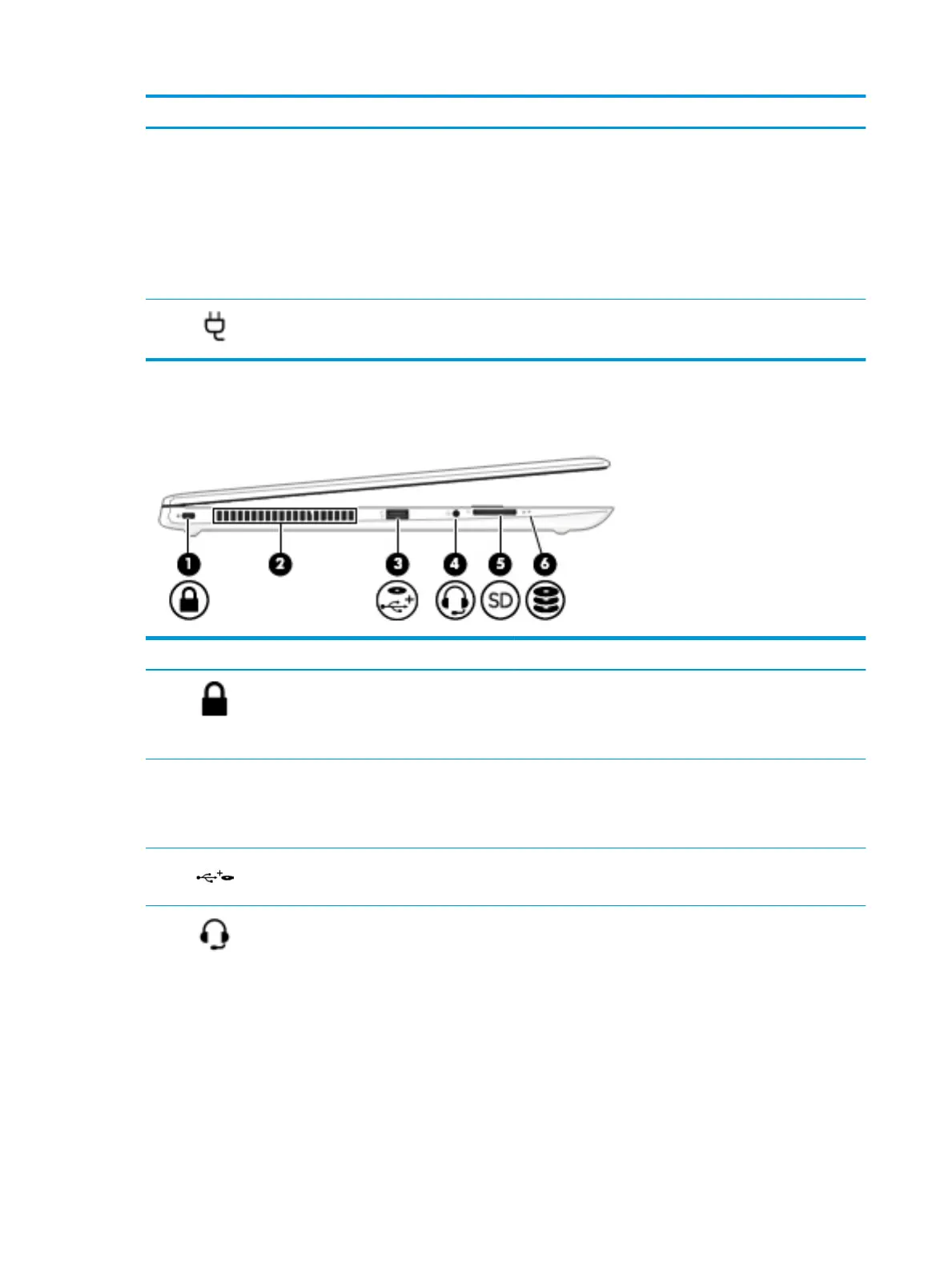 (1) Security cable slot Attaches an optional security cable to the computer.