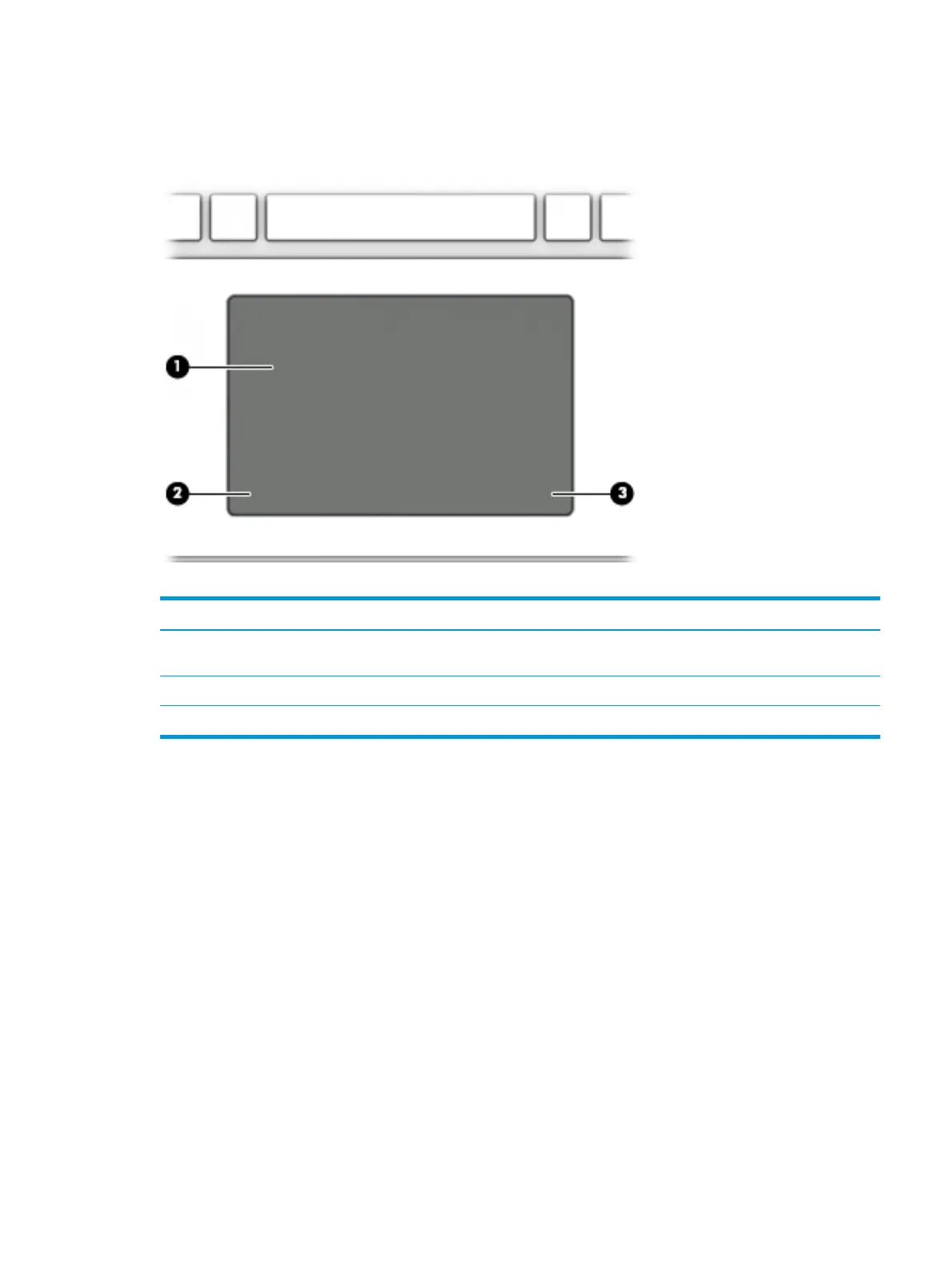 (1) TouchPad zone Reads your nger gestures to move the pointer or activate