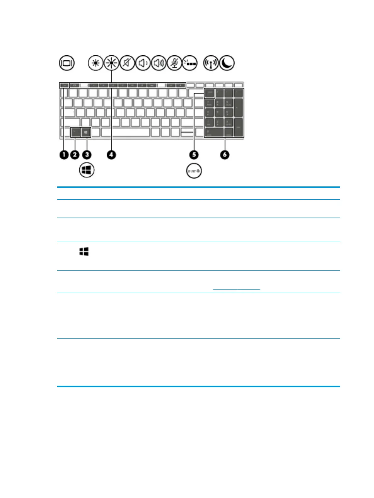 (5) num lk key Turns the embedded numeric keypad on and o when pressed in