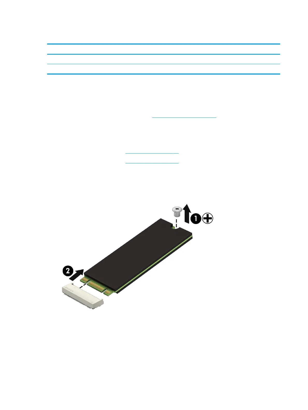 2. Remove the solid-state drive (2) by pulling the module away from the slot at an angle.