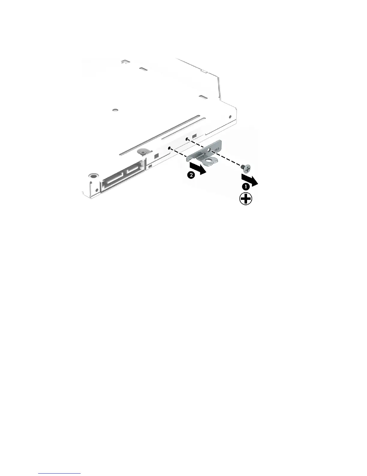 4. If it is necessary to remove the bracket from the optical drive, remove the Phillips PM2.5×4.0 screw (1)