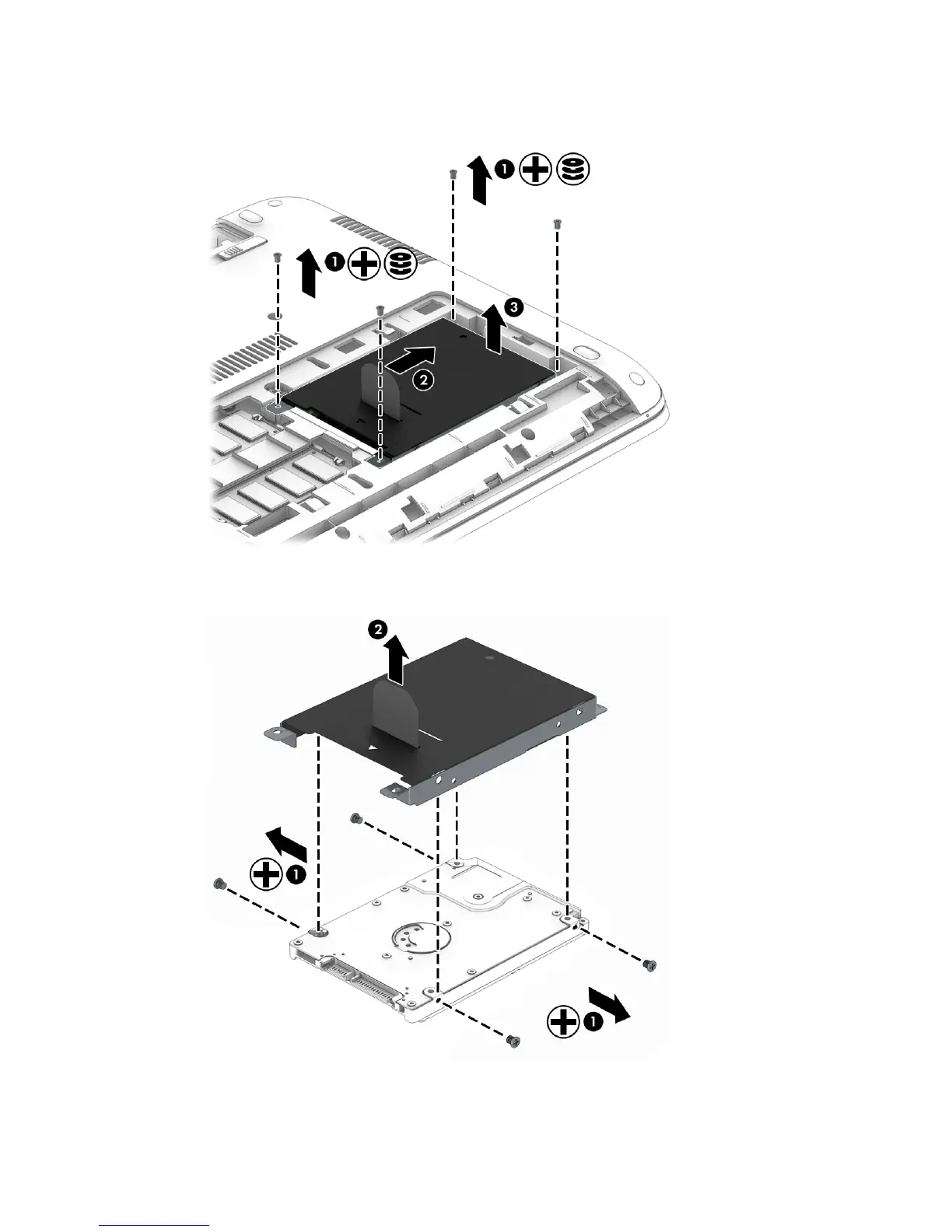 secure the bracket to the drive, and then lift the cover o the drive (2).