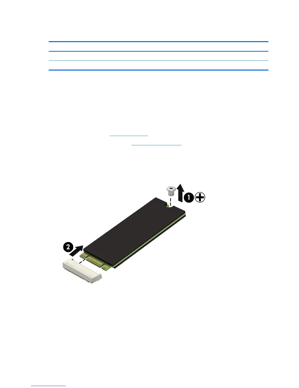 2. Remove the solid-state drive (2) by pulling the module away from the slot at an angle.