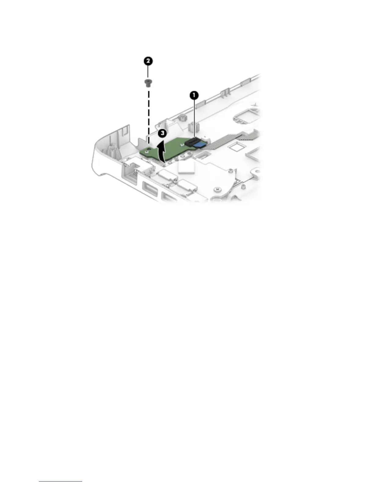 4. Lift the left side of the board, and then remove the board from the top cover (3).