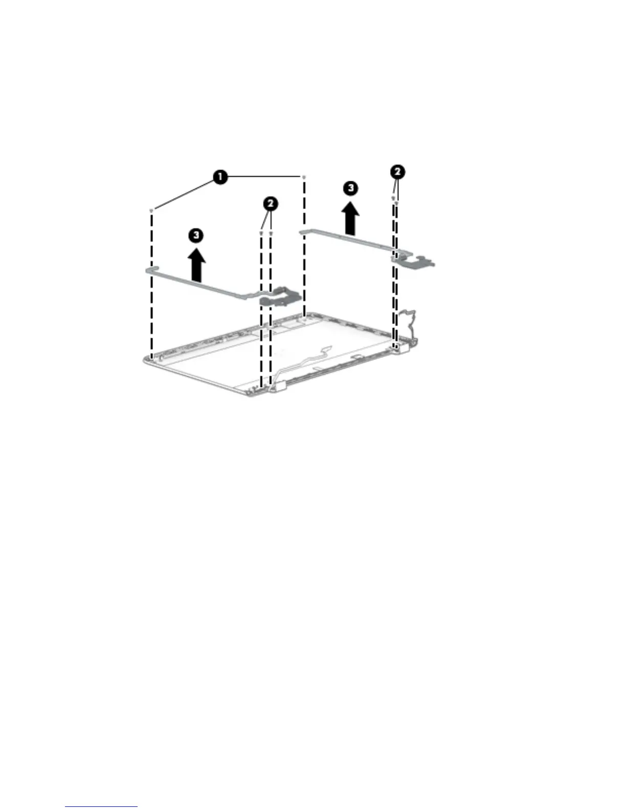 13. If it is necessary to replace the display hinges, remove the 2 Phillips PM2.0×3.0 screws at the top (1) and