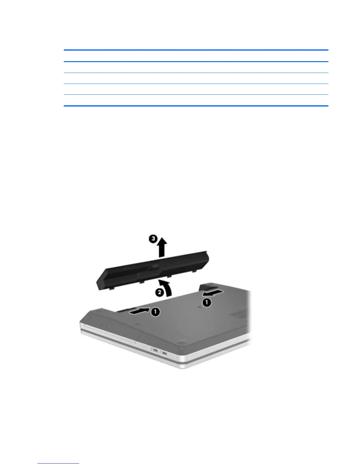 3. Pivot the battery (2) upward to remove it from the computer (3).