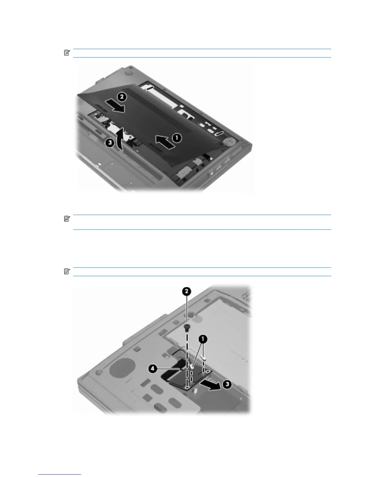 NOTE: WLAN modules are designed with a notch (4) to prevent incorrect insertion.