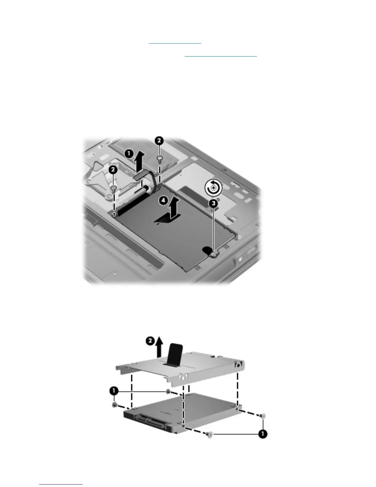 5. If it is necessary to replace the hard drive bracket, follow these steps: