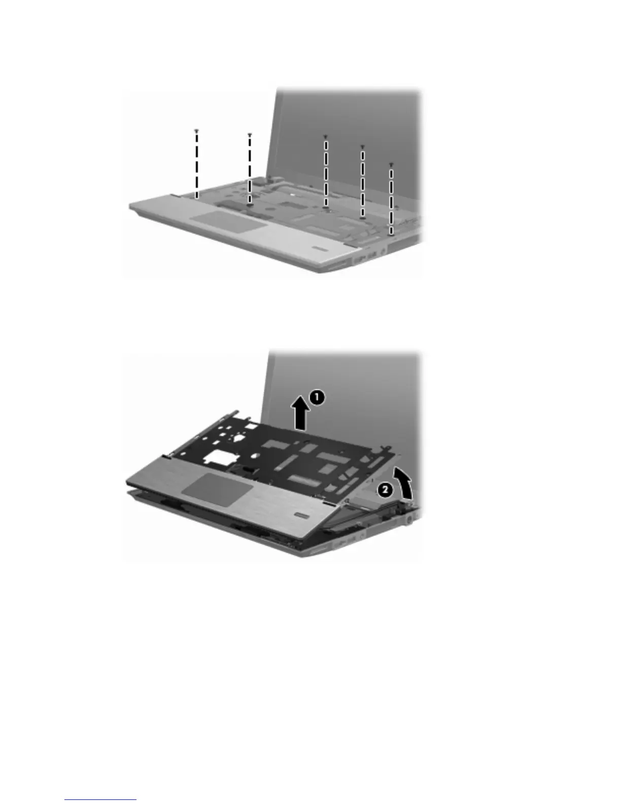 6. Remove the five PM2.5x5.0 screws that secure the keyboard to the base enclosure.