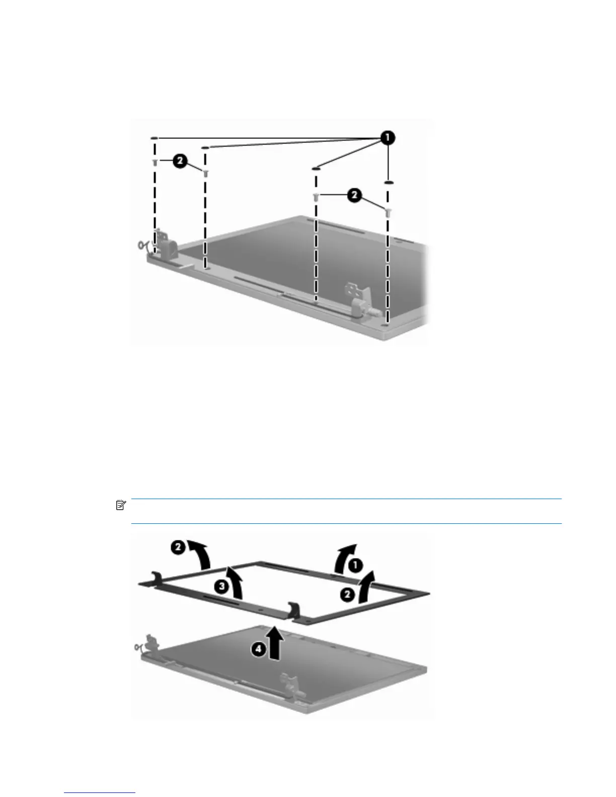 4. If it is necessary to replace the display bezel, display enclosure, or display hinges, remove the four
