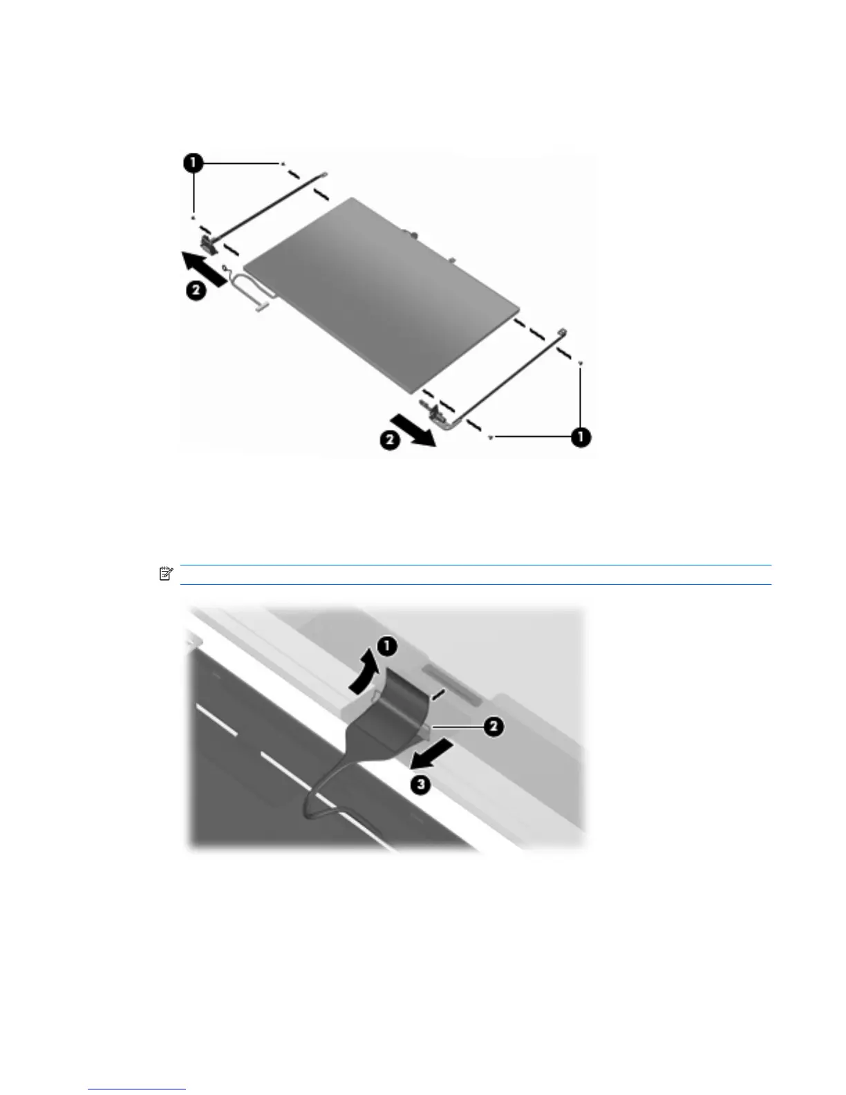 then remove the display hinges (2). The left and right display hinges are available in the Display