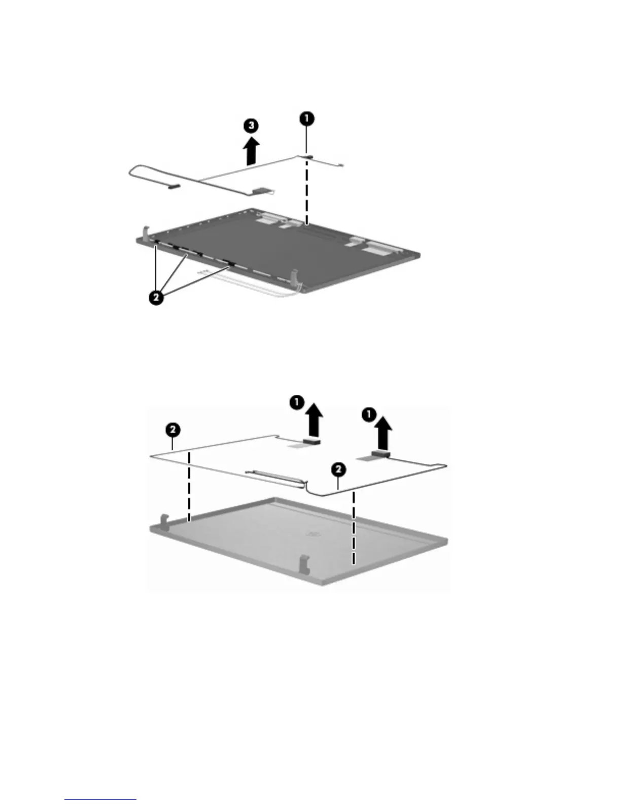 a. Detach the WLAN antennas and the WWAN antennas (1) from the adhesive on the back