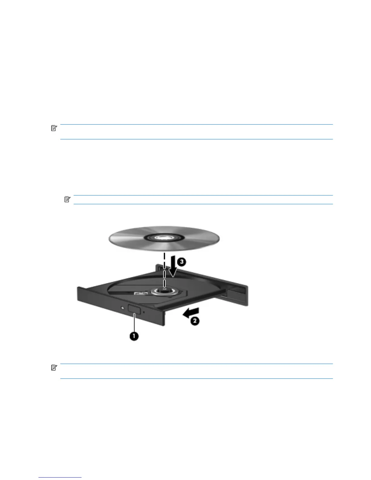 NOTE: After you insert a disc, a short pause is normal. If you have not selected a media player, an