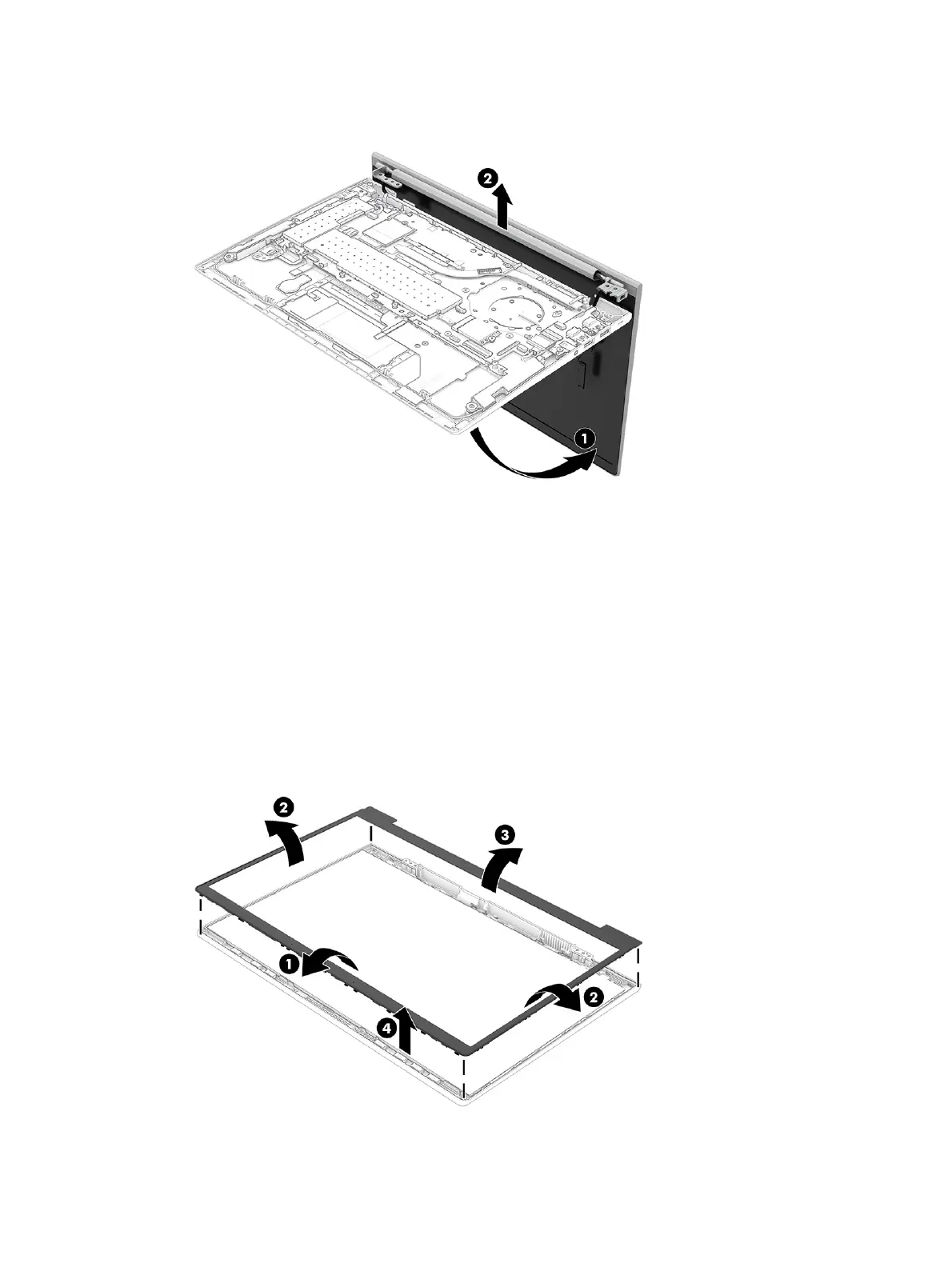 b. Remove the bezel from the display (4).