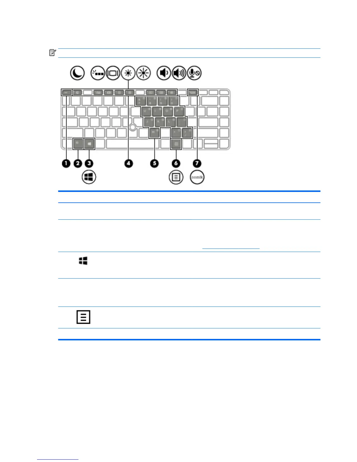 (6) num lock key Turns the embedded numeric keypad on and o.