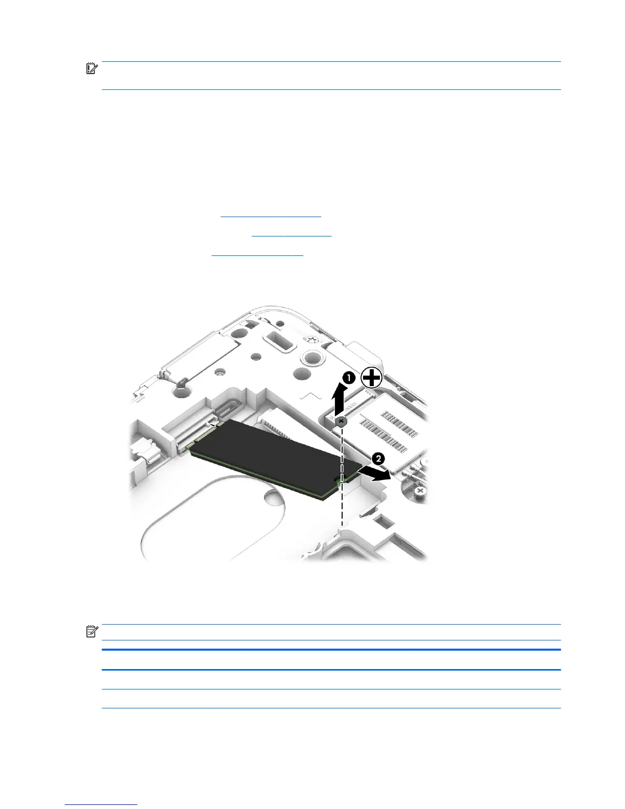 Remove 1 Phillips M2.0x8 screw (1), and then remove the solid-state drive (2).