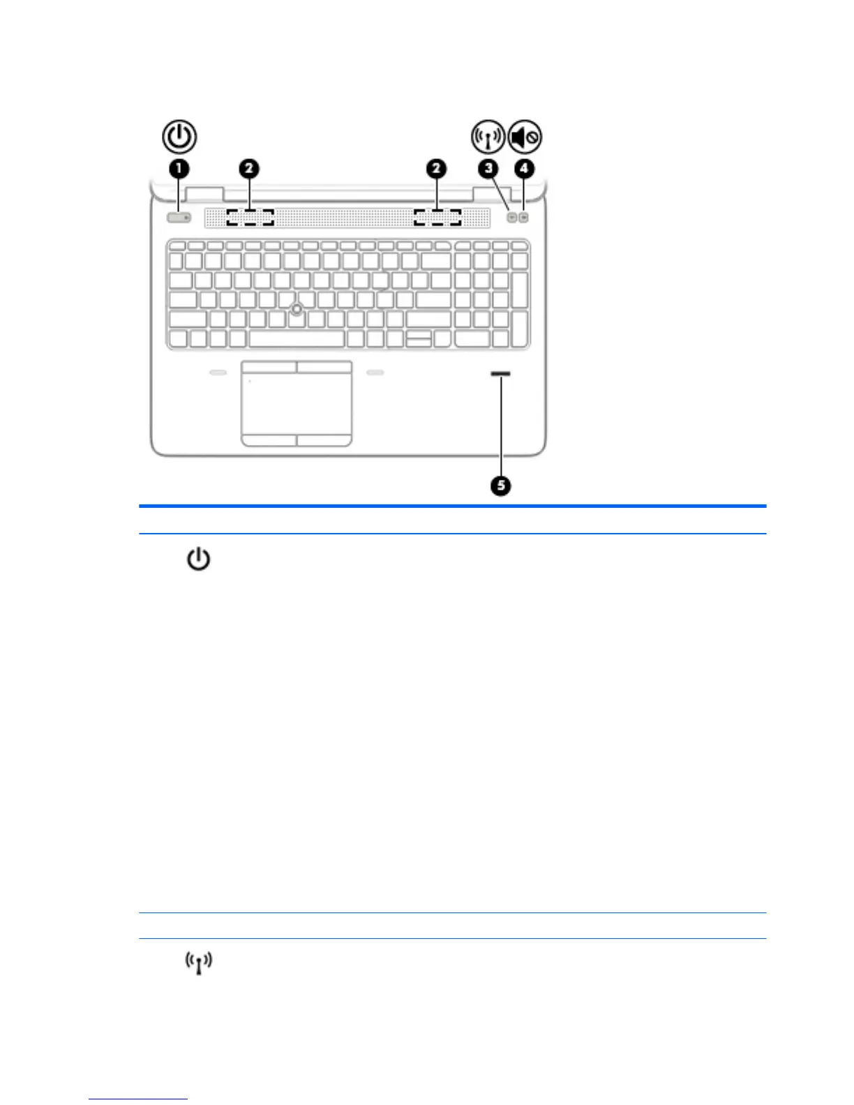 (3) Wireless button Turns the wireless feature on or o but does not establish a