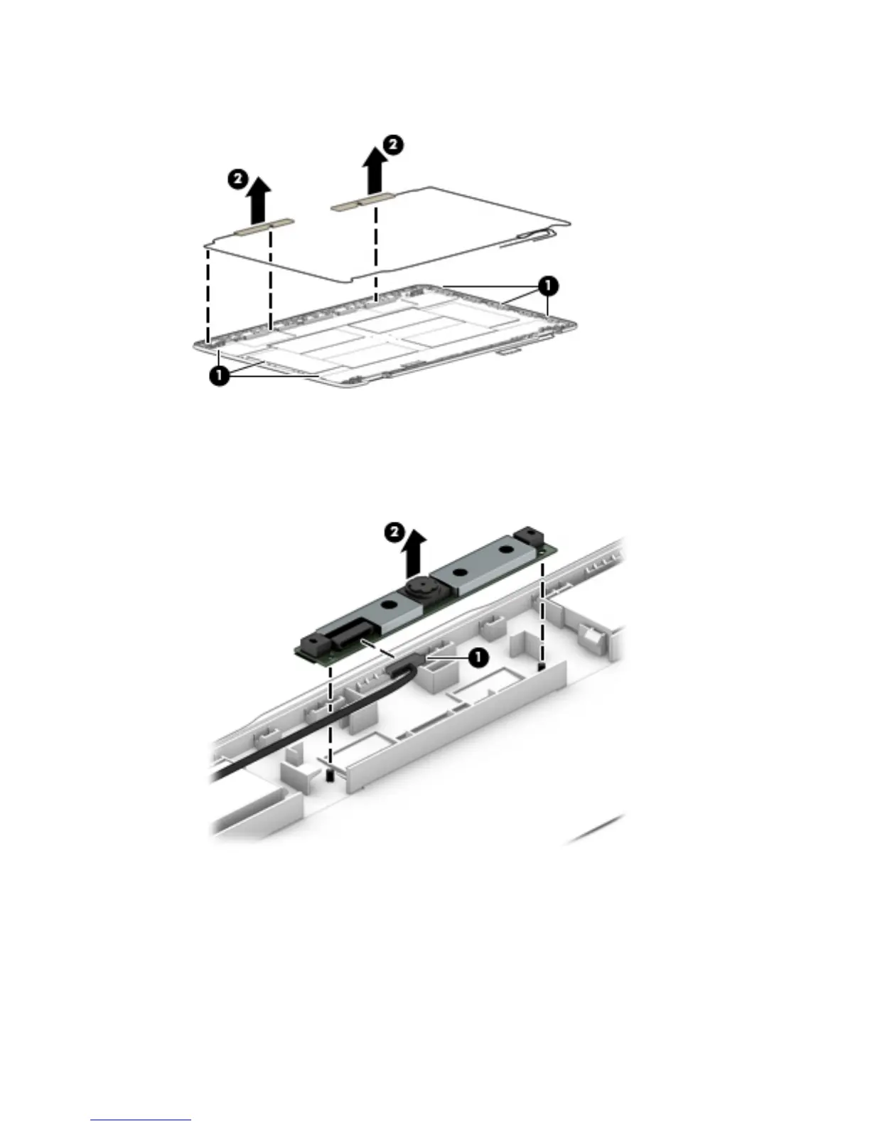 b. Detach the webcam (2) from the display enclosure.