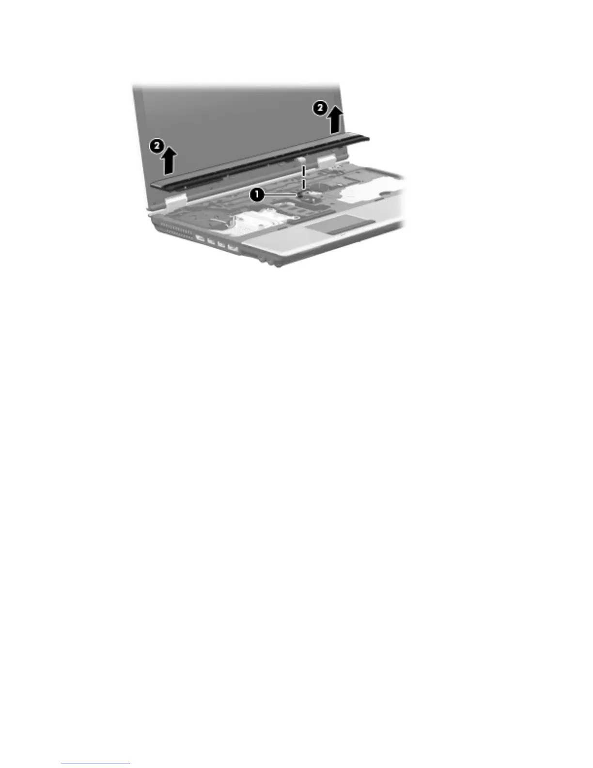 Lift the left and right sides of the switch cover (2) until it detaches from the computer.