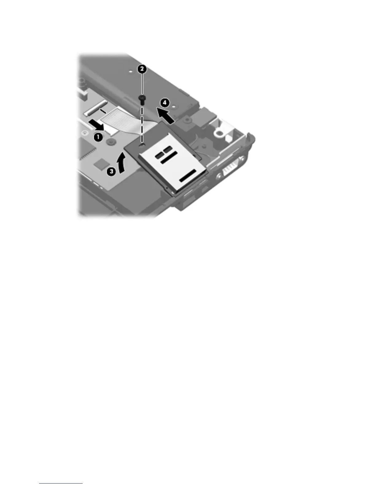 Remove the flash media/1394 board by sliding it up and to the left (4).