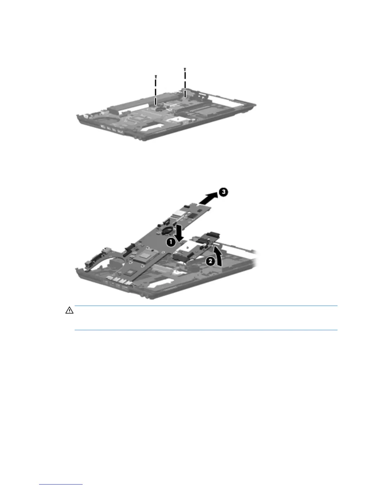 caution can result in damage to the system board and the optical drive connector board.