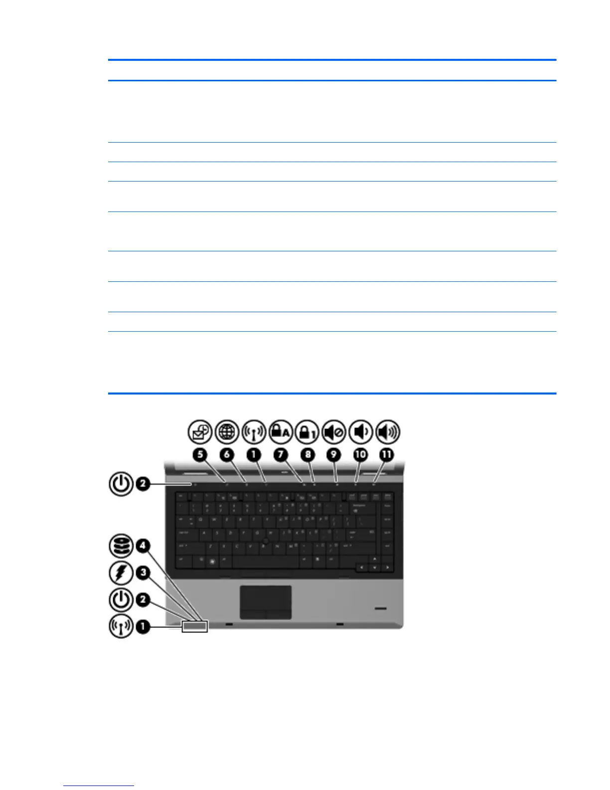 *The 2 wireless lights display the same information. The light on the wireless button is visible only when the computer is open.