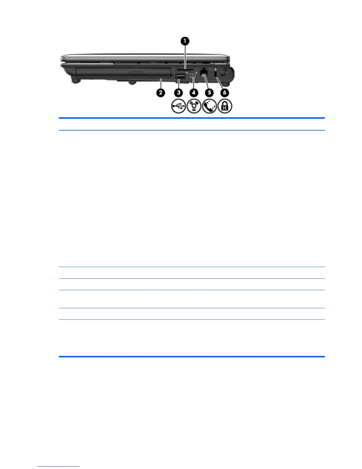 (4) 1394 port Connects an optional IEEE 1394 or 1394a device, such