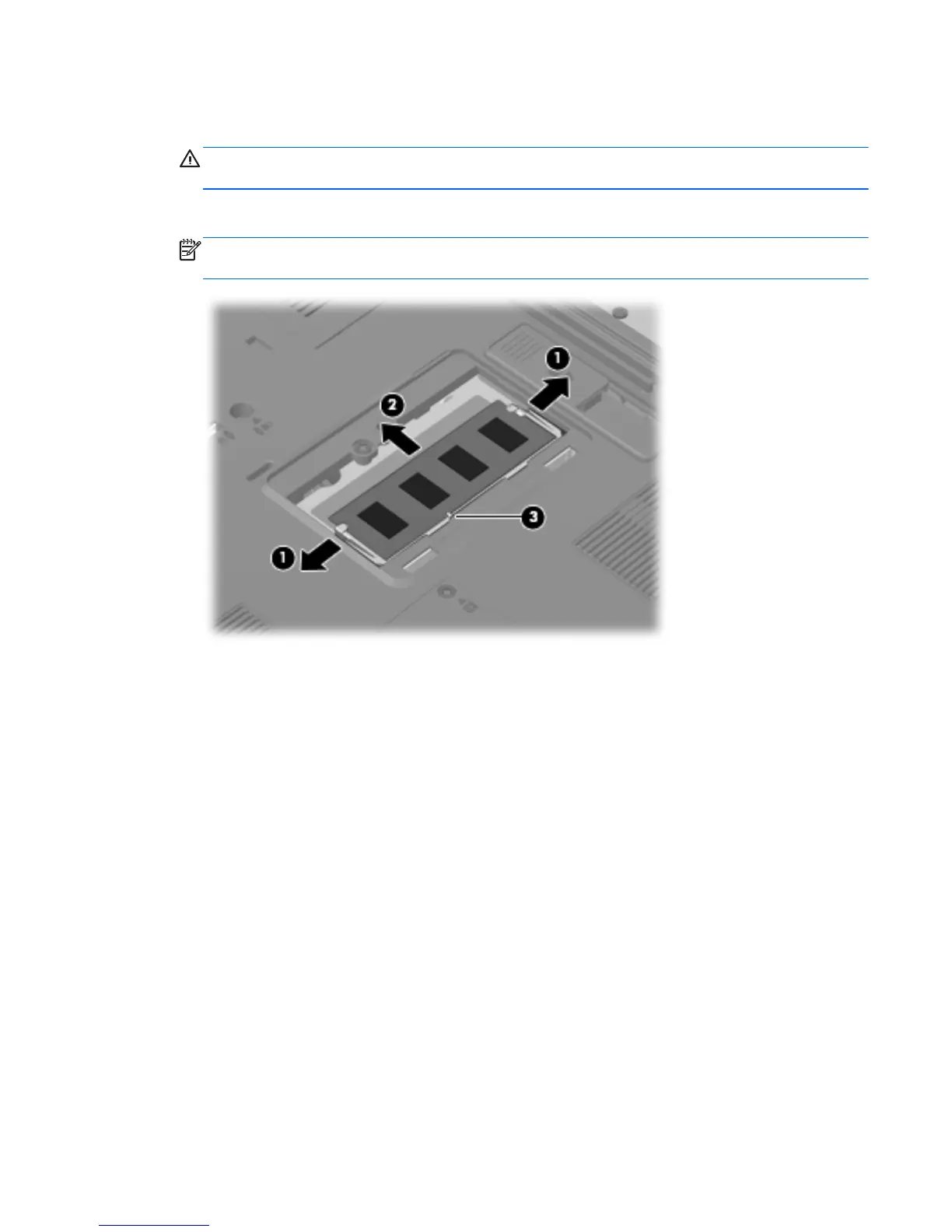 NOTE: Memory modules are designed with a notch (3) to prevent incorrect insertion into the