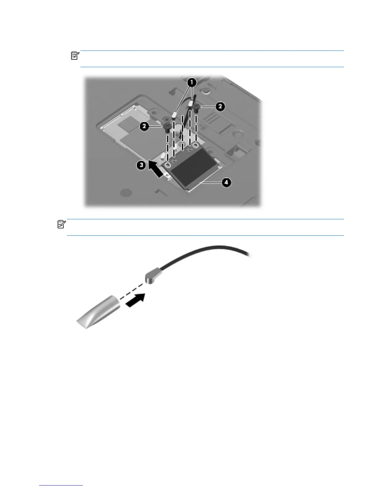 NOTE: WLAN modules are designed with a notch (4) to prevent incorrect insertion of the